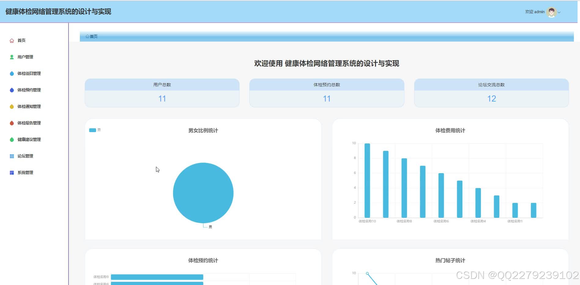 系统后端采用 Spring Boot 实现预约调度、报告生成等业务逻辑,MySQL 存储用户信息、体检套餐、预约数据及报告结果;前端设计简洁界面,适配多终端操作。核心功能含体检预约(选择套餐、预约时间,接收提醒)、报告管理(在线查看、下载体检报告,获取健康解读)、数据统计(机构分析预约量、报告领取率),助力用户便捷体检,机构高效管理。