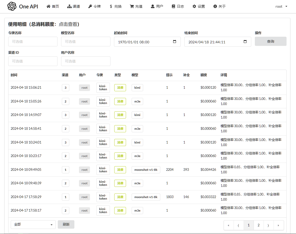 所有的请求,在 One API 的日志中都有记录
