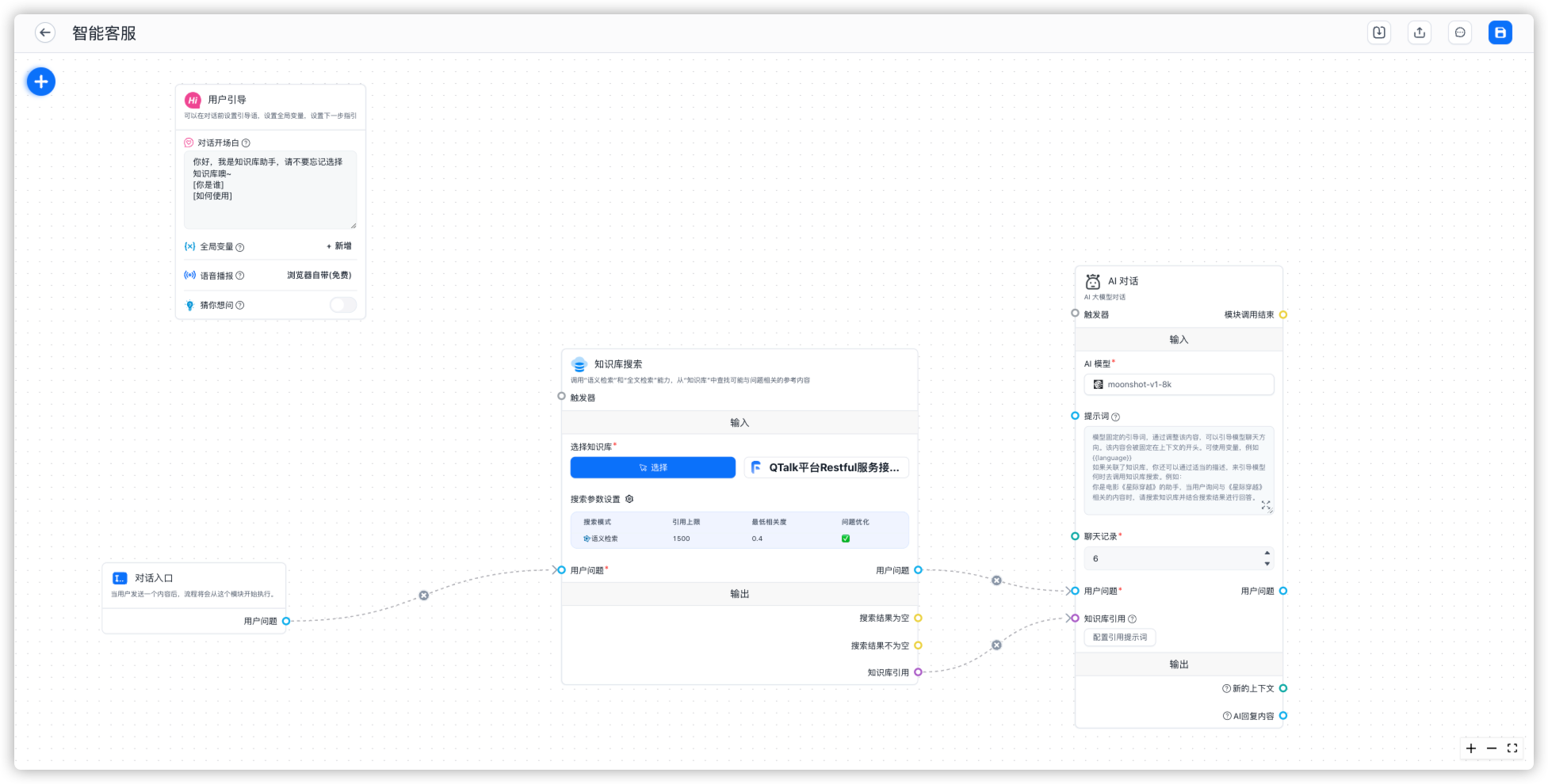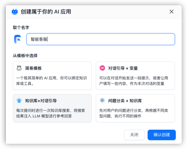 模板选择了 知识库+对话引导