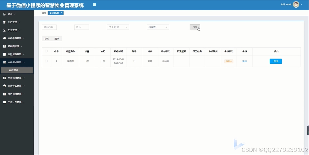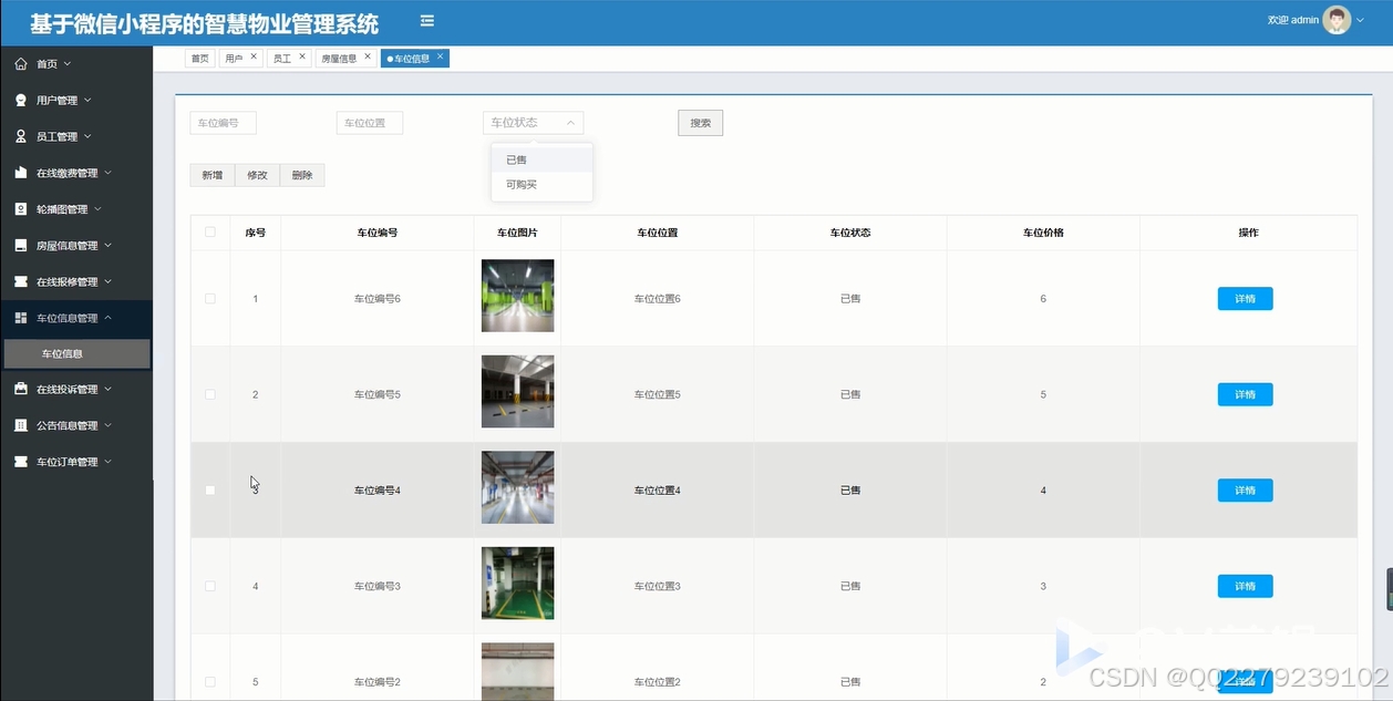 python基于微信小程序的智慧小区物业管理系统房屋报修停车位缴费(源码+文档+运行视频+讲解视频)