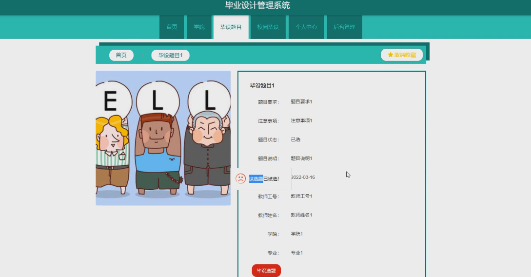 Key words: graduation project management system; Java language; Mysql database; Springboot framework