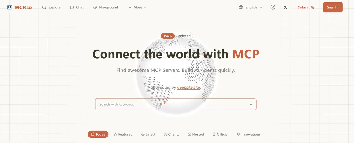 以及全球最繁荣的 MCP 生态圈网站,mcp.so: Connect the world with MCP!