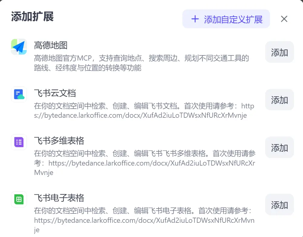 扣子空间的 MCP Server 添加界面: