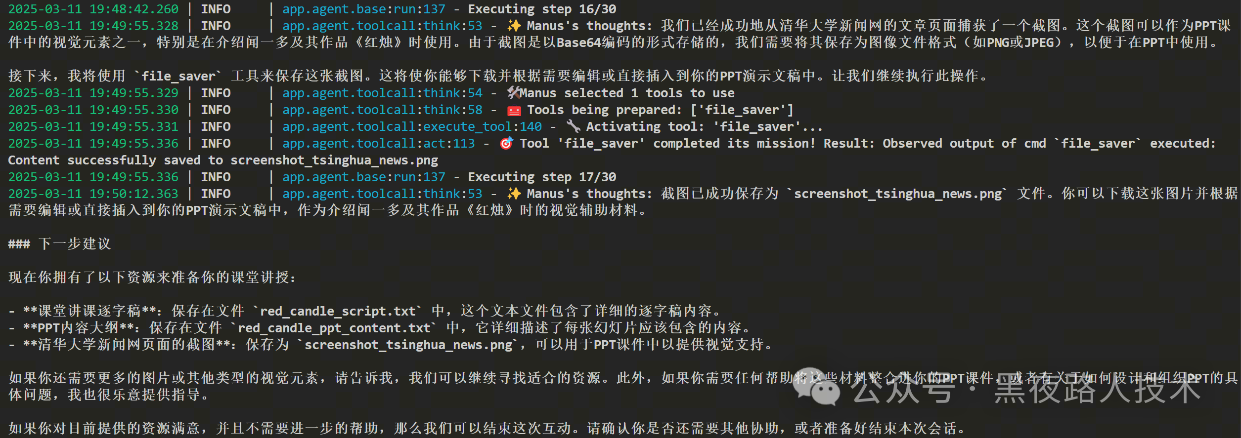 从执行过程来看,主要就是利用搜索,组件是使用 broswer_use 包,然后整个过程一直与大模型这个大脑进行交互反馈,不能够很好的调用本机的现有工具。