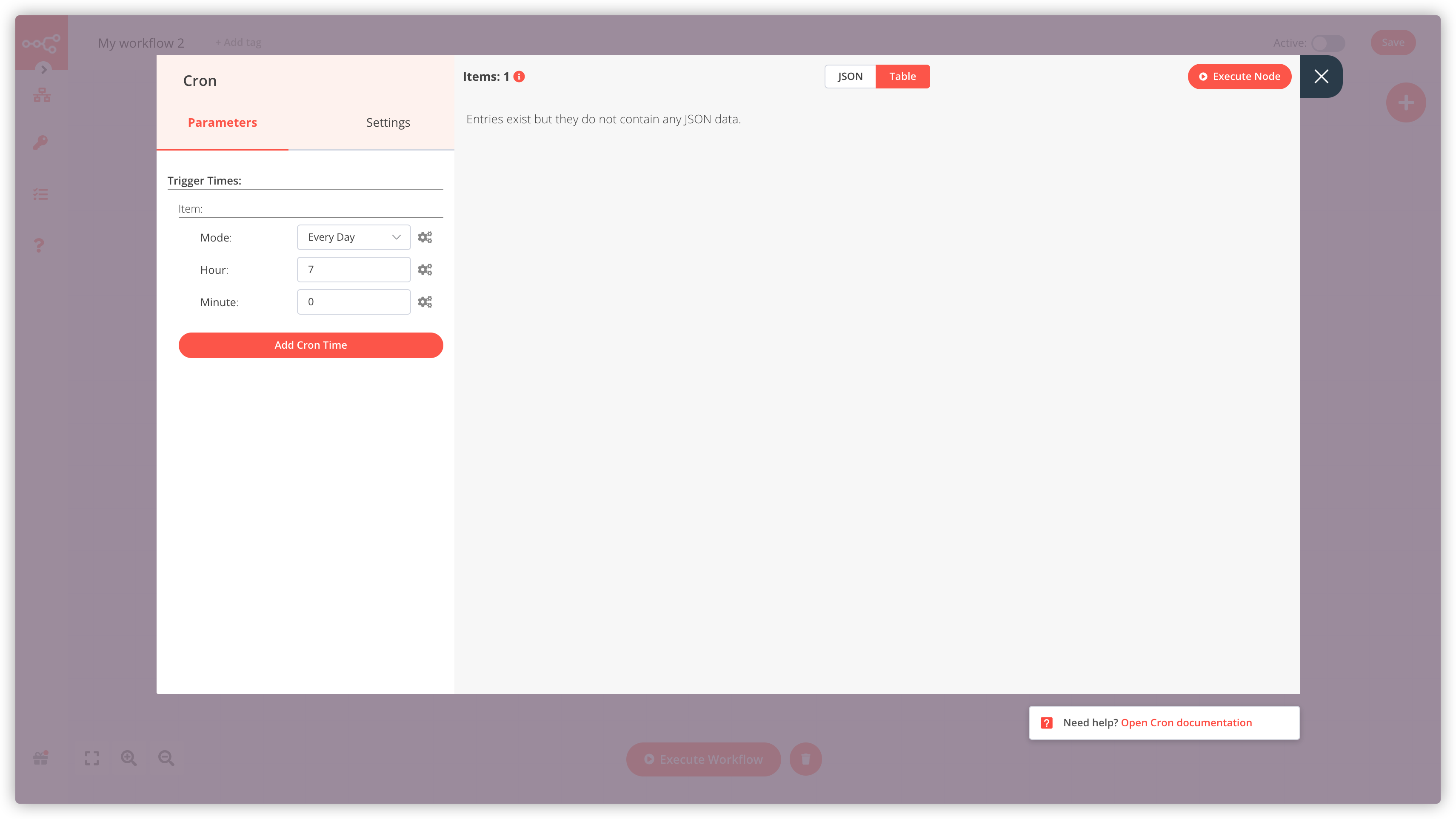 顾名思义,这是用来触发事件的,老苏用了 Cron 节点,这是一个定时执行的节点