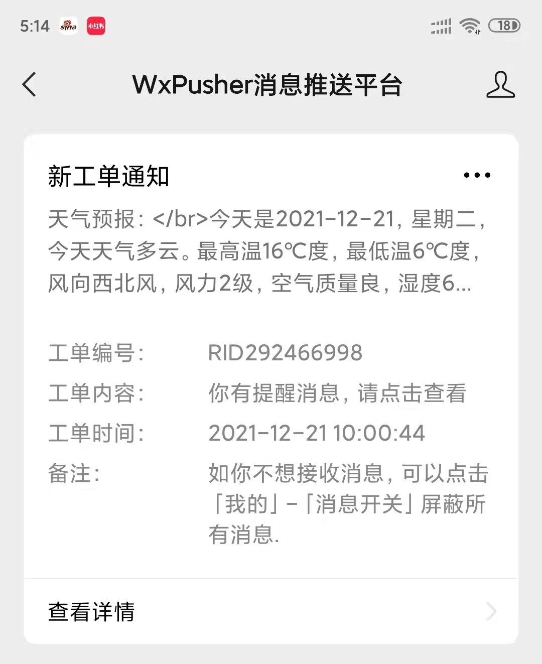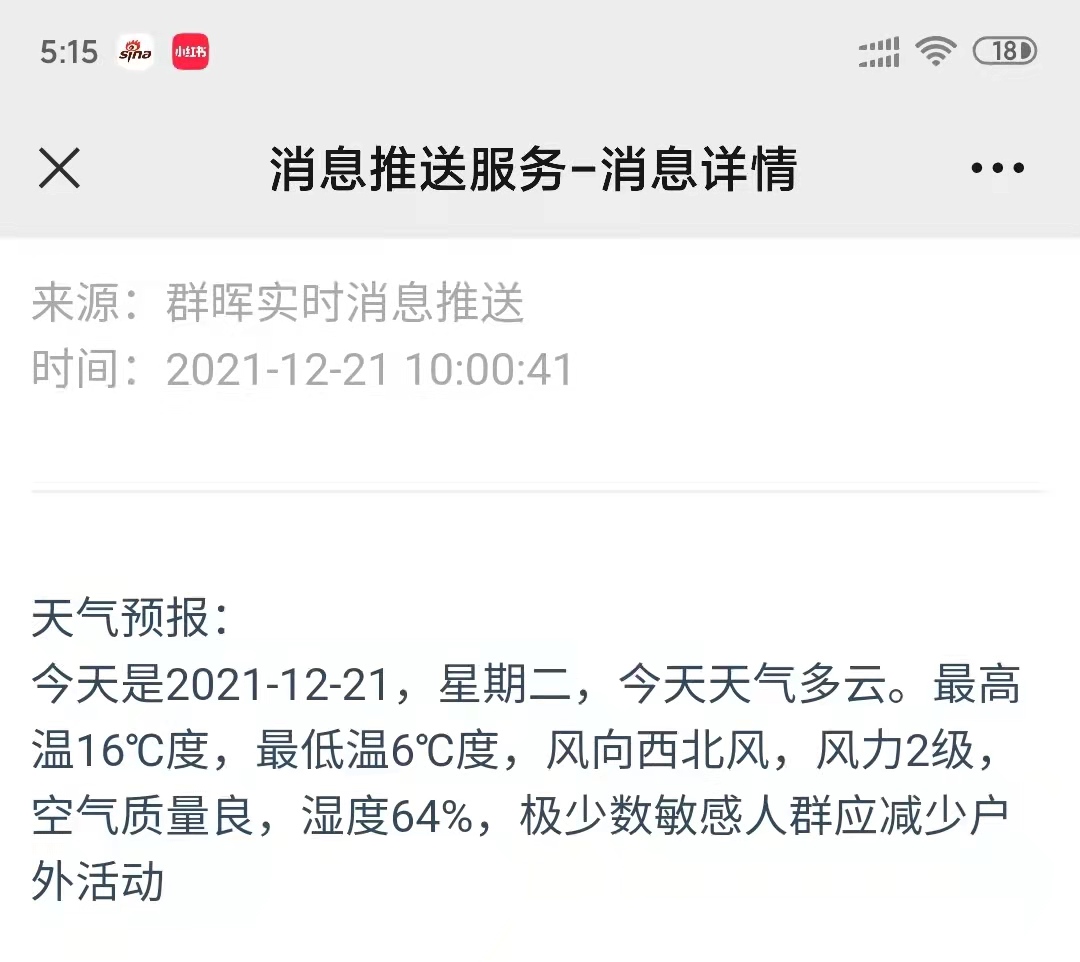 如果一次不够的话,可以再增加几次,但是一天不要超过 4 次。不管是 weather.api 还是 WxPusher ,虽然使用是免费的,但是维护者还是有成本的,别薅羊毛把羊🐑给薅没了