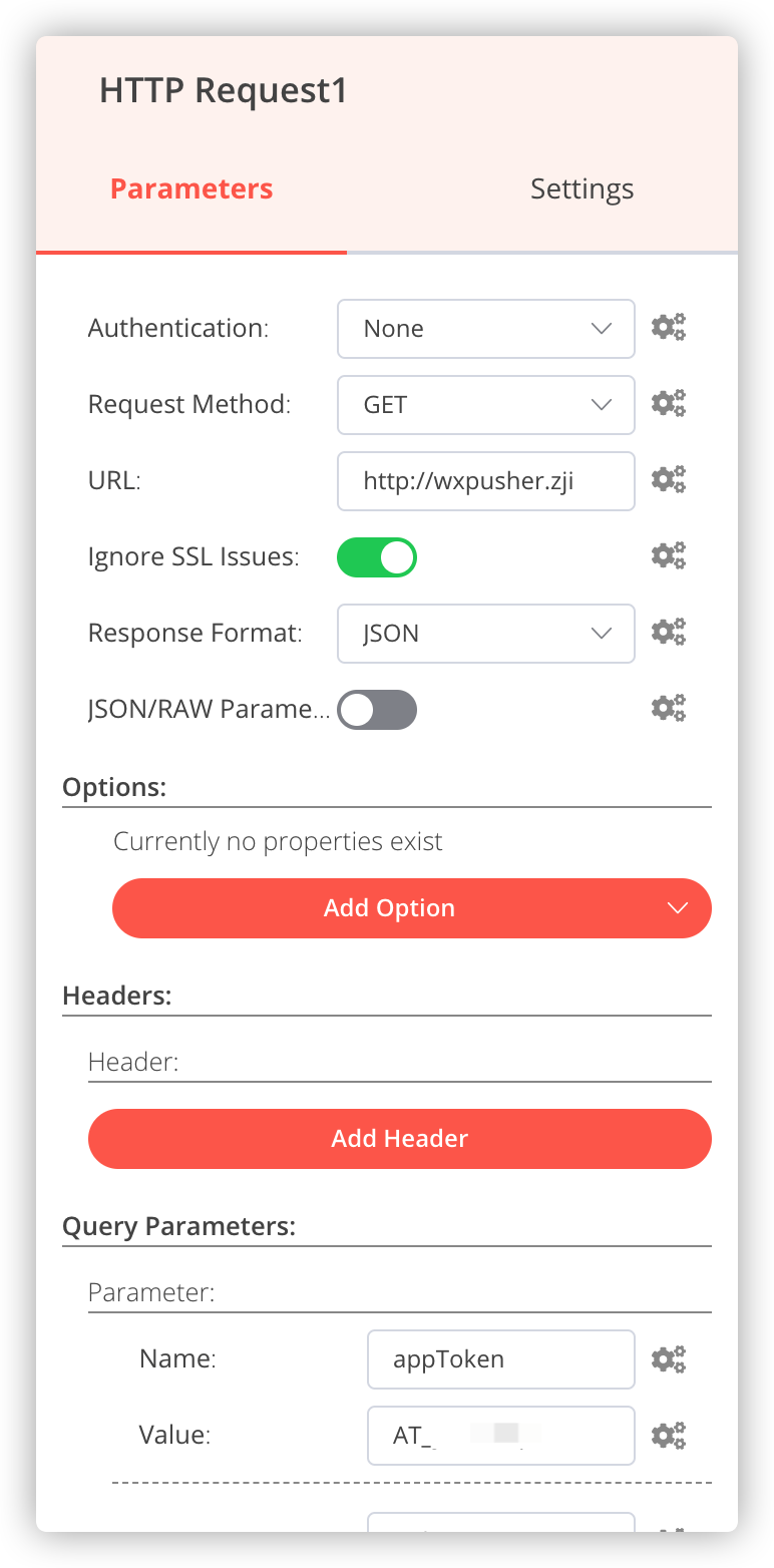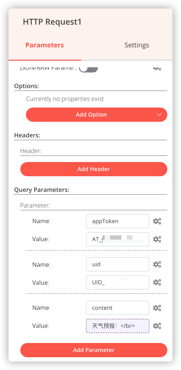 老苏用了 HTTP Request 节点来触发相应的动作,也就是通过WxPusher 实现微信发送天气预报