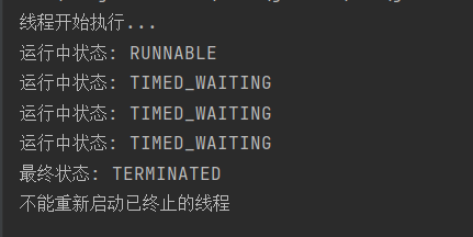 System.out.println("线程状态: " + Thread.currentThread().getState()); // RUNNABLE