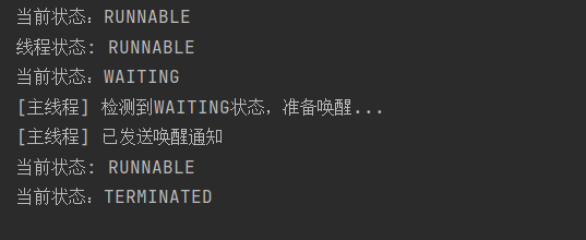 System.out.println("[主线程] 检测到WAITING状态,准备唤醒...");