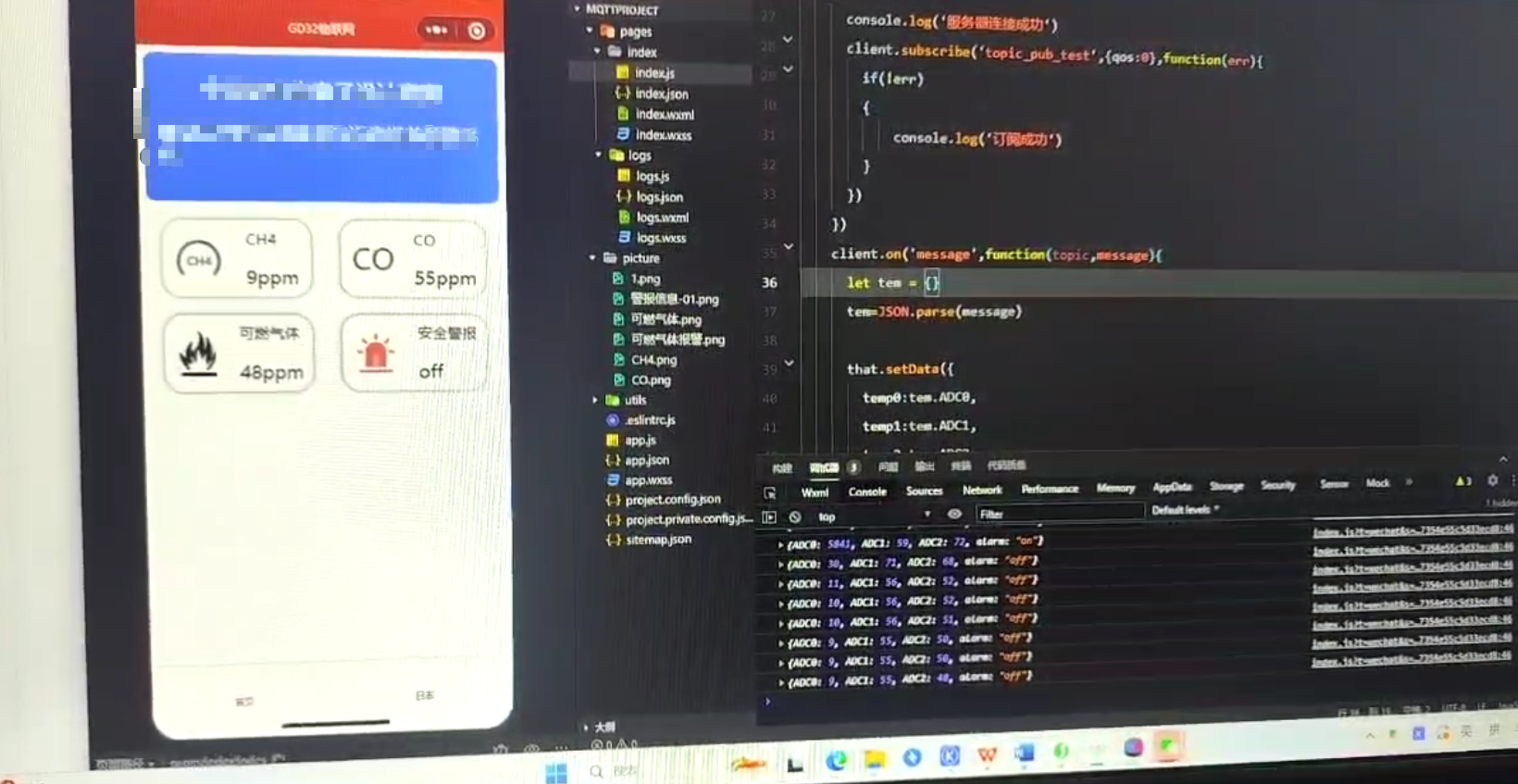 微信小程序开发是使用微信开发者工具实现的,具体的开发过程建议B站找寻专业博主学习,小白就不在这里解释了,我这里只简单的叙述一下微信小程序连接MQTT以及从服务器获取数据的过程,