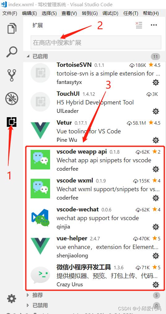 1. 安装插件2. 文件-打开文件夹-将新建的微信小程序导入,代码会有高亮的效果3. 编辑内容,查看效果,如果有就说明插件引入成功。