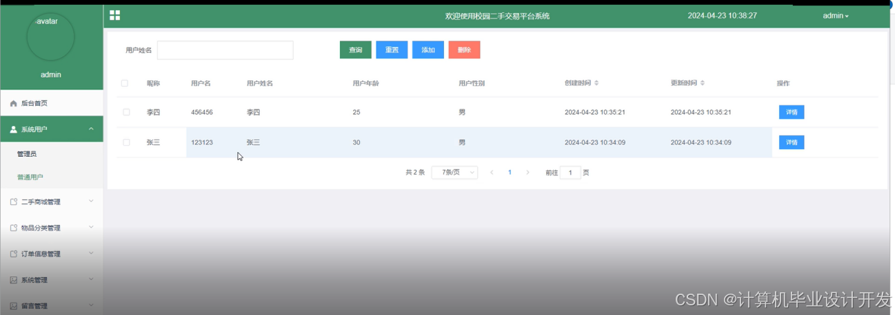 (3)二手商城管理:管理二手商品的发布、编辑、删除等操作,支持商品信息审核和管理。