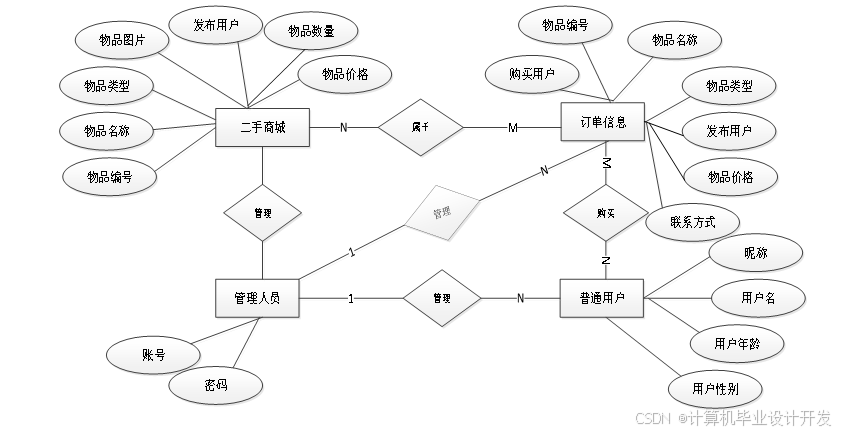 下面是整个二手交易平台系统中主要的数据库表总E-R实体关系图。