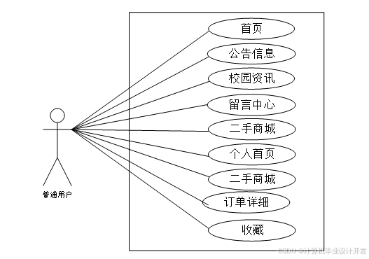 (5)二手商城:用户可以浏览、搜索、购买二手商品,支持商品分类、筛选等功能。