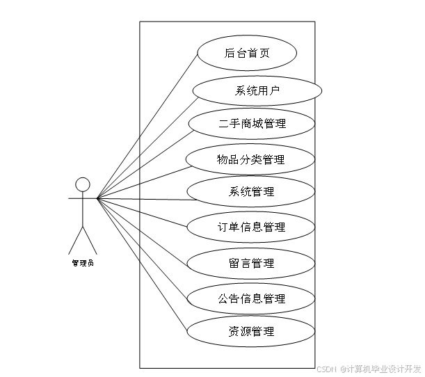 二手交易平台系统中管理员角色用例图如图2.2所示: