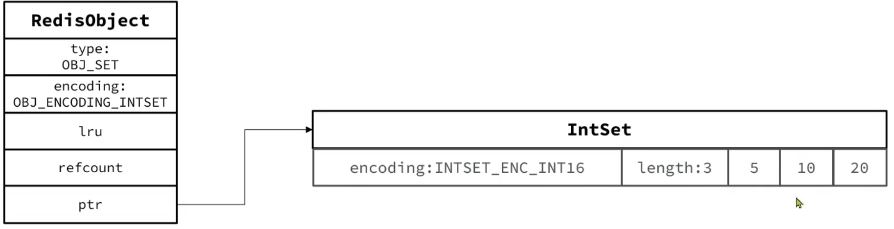 当存储的所有数据都是整数,并且元素数量不超过set-max-intset-entries时,set会采用IntSet编码,以节省内存。