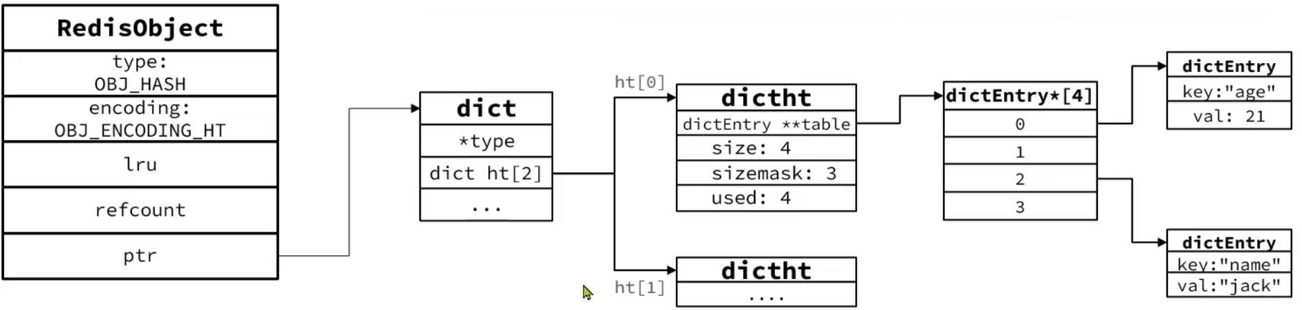 2.当数据量较大时,Hash结构会转为HT编码,也就是Dict,出发条件为:(1)ZipList中的元素数量超过了hash-max-ziplist-entries(默认512)(2)ZipList中的任意entry大小超过了hash-max-ziplist-value(默认64字节)。
