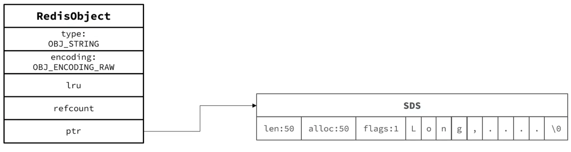 如果存储的字符串是整数值,并且大小在LONG_MAX范围内,则会采用INT编码:直接将数据保存在RedisObject的ptr指针位置(刚好8字节),不再需要SDS了。