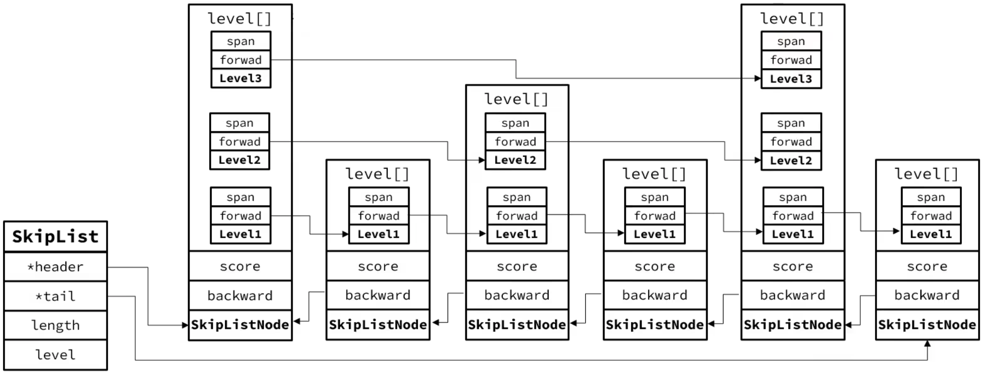 不同层指针到下一个节点的跨度不同,层级越高,跨度越大