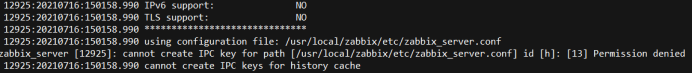 zabbix_server [12925]: cannot create IPC key for path '/usr/local/zabbix/etc/zabbix_server.conf', try to create for path '.': [13] Permission denied