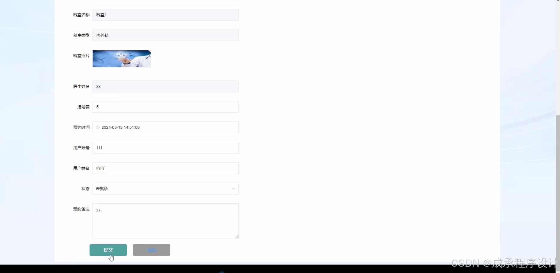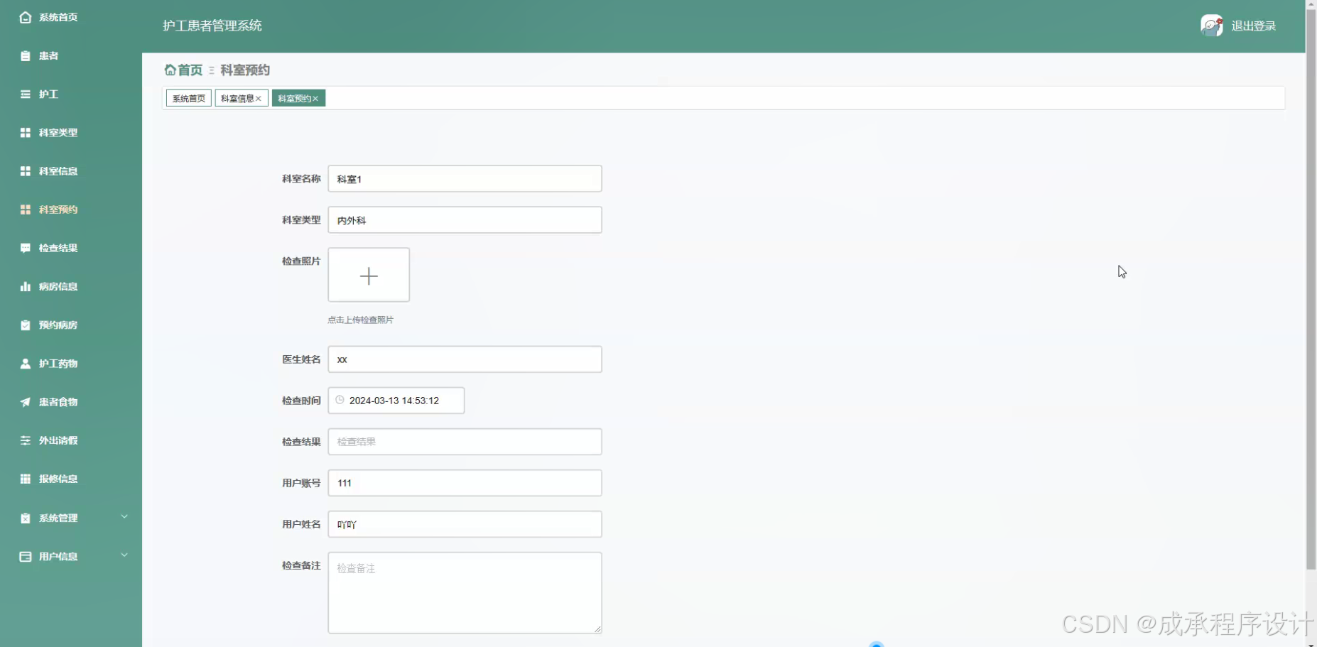 - 科室预约功能:患者可以通过系统查看各科室的预约信息(如可预约时间段、专家出诊信息等),并进行预约挂号操作。系统能够根据科室的资源情况(如医生的排班、检查设备的使用情况等)合理安排患者的预约,避免资源冲突,提高科室的工作效率。