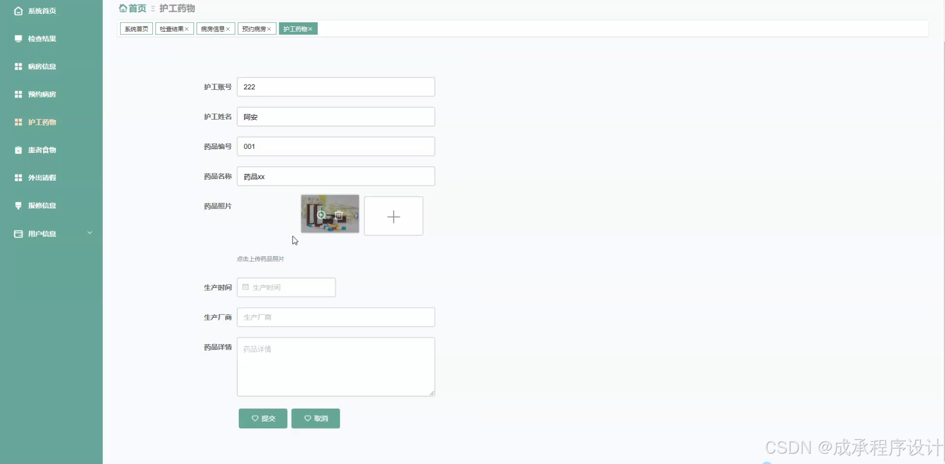 - 患者食物管理:根据患者的病情(如糖尿病患者、高血压患者等特殊饮食需求)和个人喜好,系统对患者的食物进行管理。包括制定个性化的饮食菜单、食物配送安排等。这有助于满足患者的营养需求,促进患者的康复。