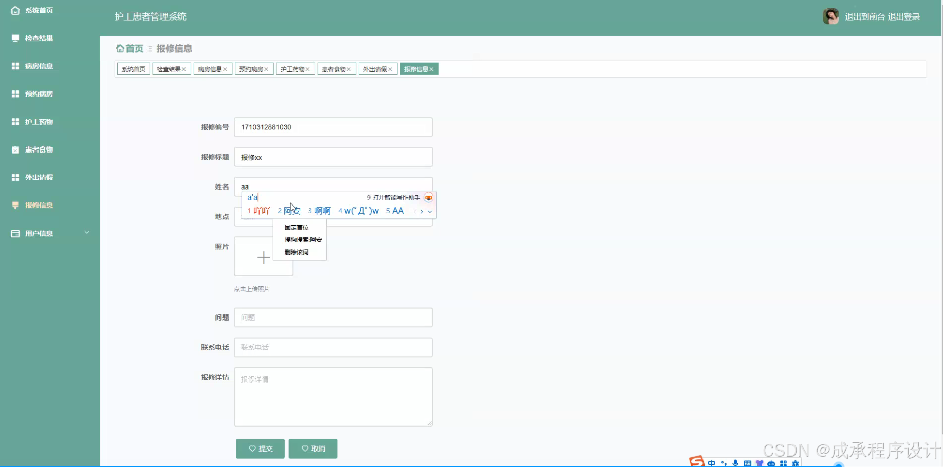- 报修信息管理:如果病房内的设备设施出现故障或者其他需要维修的情况,护工或患者可以通过系统提交报修信息,包括故障描述、报修地点等。维修人员能够及时获取报修信息并进行维修安排,同时系统可以对维修进度进行跟踪,提高维修工作的效率。