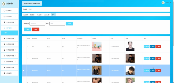 用户管理(账号、姓名、密码、性别、身份证、驾驶证、手机、头像)