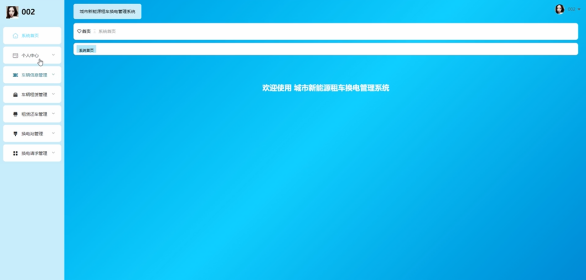 工作人员进入系统可以对系统首页、个人中心、车辆信息管理、车辆租赁管理、租赁还车管理、换电站管理、换电请求管理等功能进行操作。工作人员主页面如图5-12所示: