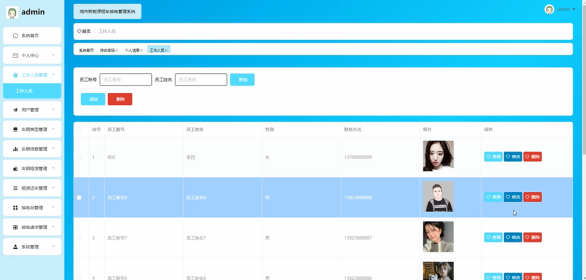 工作人员管理(账号、姓名、性别、联系方式、照片)