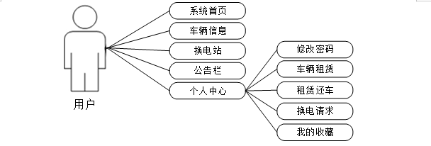 (3) 用户可以对修改密码、车辆租赁、租赁还车、换电请求、我的收藏进行操作,用例分析如图3-3所示。