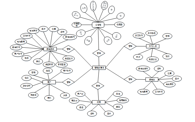 数据库的概念模型即系统的E-R实体—关系模型。根据对具体的功能需求进行分析,从而得到E-R实体-关系模型,本系统将“换电请求、公告栏、工作人员、换电站、收藏、用户”等作为实体,它们的局部E-R图,如图4-2所示: