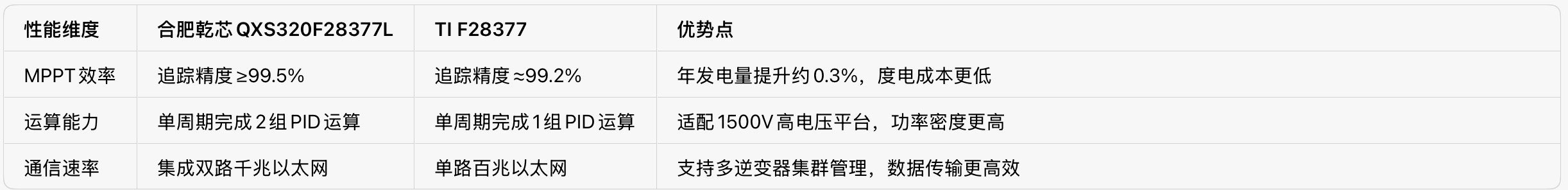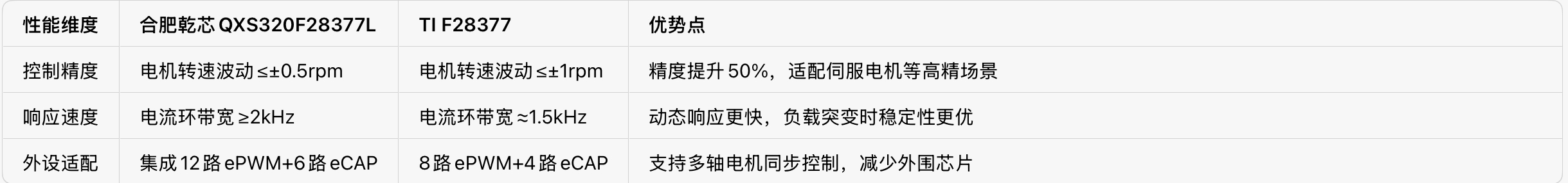 2. 精准替代矩阵:QXS320系列可直接对标替代TI F28335/F280049/F28377,引脚、外设功能兼容,客户迁移成本近乎为零。