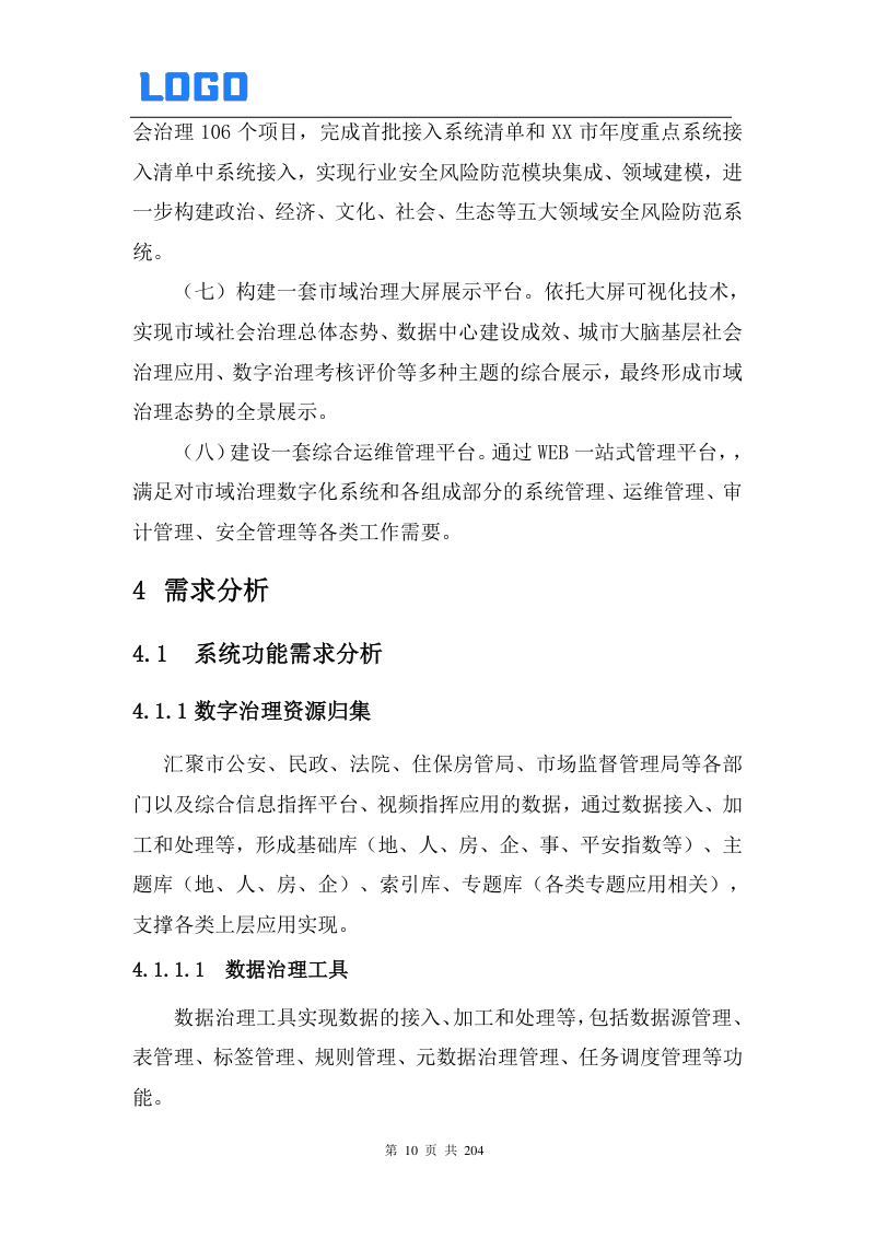 1建设背景92建设目标103建设内容104需求分析124.1系统功能需求分析124.1.1数字治理资源归集124.1.2分领域安全风险防范134.1.3安全风险防范搜索引擎134.1.4数字治理考核评价174.1.5市域治理全景展示板块184.1.6与综合信息指挥平台交互需求184.1.7数据应用与共享支撑需求184.1.8系统管理功能194.2系统性能需求分析204.2.1系统稳定性204.2.