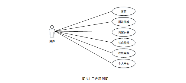 用户可以查看服装商城、淘宝女装、社交互动、在线客服等。用户用例图如图3-1所示。