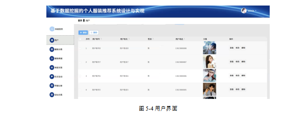 管理员在用户页面查看和管理用户信息,进行添加、删除或修改等操作。用户界面如图5-4所示。