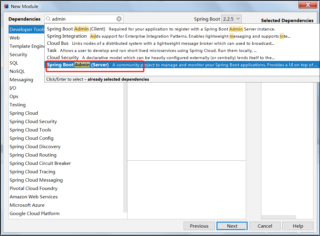在idea中快捷方式创建一个springBoot-Admin项目。