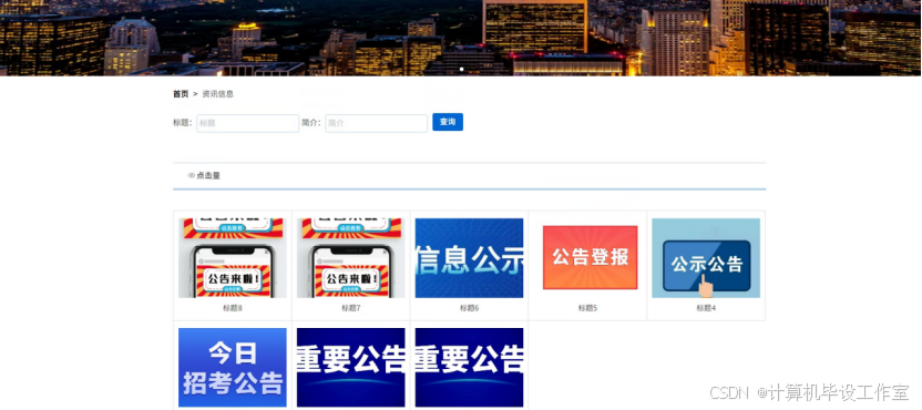 用户进入资讯信息模块后,可以浏览内容内容或者搜索某个标题进行查看,还可以在线点赞、收藏、评论操作。资讯信息界面如图5-7所示。