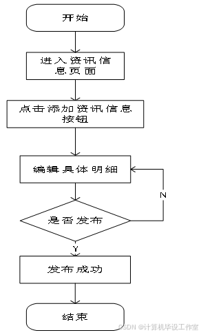 管理员点击资讯信息界面,进行资讯内容的添加操作。添加流程图如图4-6所示。