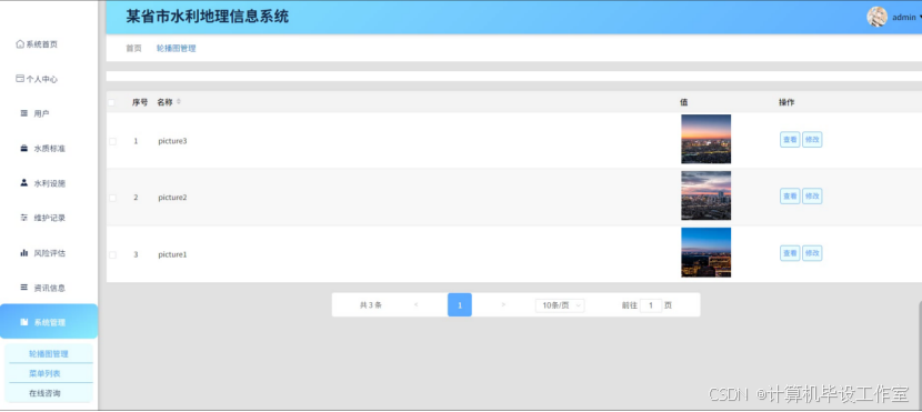 【附源码】省市水利地理信息系统(源码+数据库+毕业论文+答辩ppt)java开发springboot+vue框架javaweb,可做计算机毕业设计或课程设计