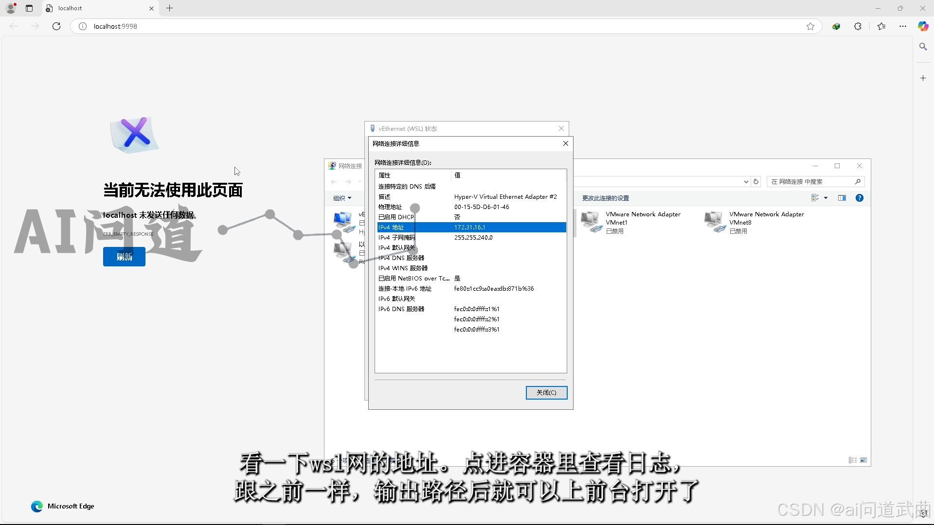 再次运行,没有问题。好,起来了。看一下wsl网的地址。
