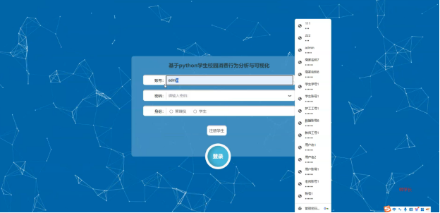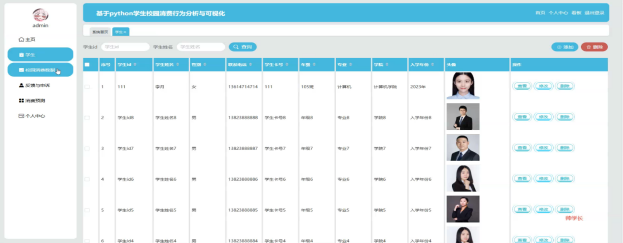 随着校园数字化进程的加快,学生在校园内的消费行为成为了解其生活习惯、优化资源配置的重要依据。通过分析和可视化学生的校园消费数据,可以有效提升学校管理效率,促进资源合理分配,并为制定更加科学的学生支持政策提供数据支撑。本项目基于Python开发了一个专注于学生校园消费行为分析与可视化的系统,利用Django作为后端框架,MySQL数据库存储数据,实现了从数据收集到预测分析的全流程自动化处理。