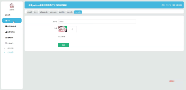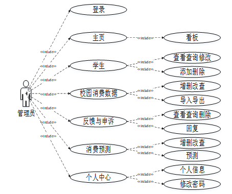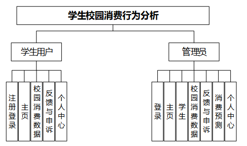 学生校园消费行为分析平台系统划分为了学生用户和管理员两大部分。