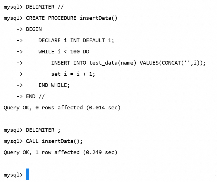 CREATE PROCEDURE insertData()