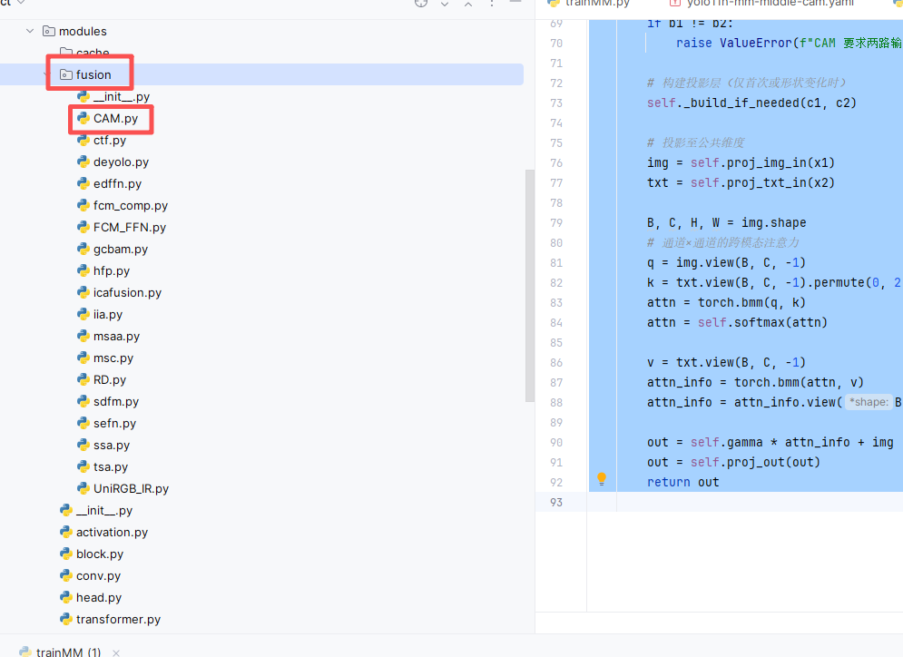 注意🔸 如果你使用我完整的项目代码,这个 fusion文件夹已经有了、里面的模块也是有的,直接使用进行训练和测试,如果没有你只需要在里面新建一个 py 文件或直接修改已有的即可,如下图所示。