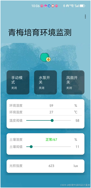 - 手动模式下,可以远程控制设备,自动模块下,可以使用阈值控制设备