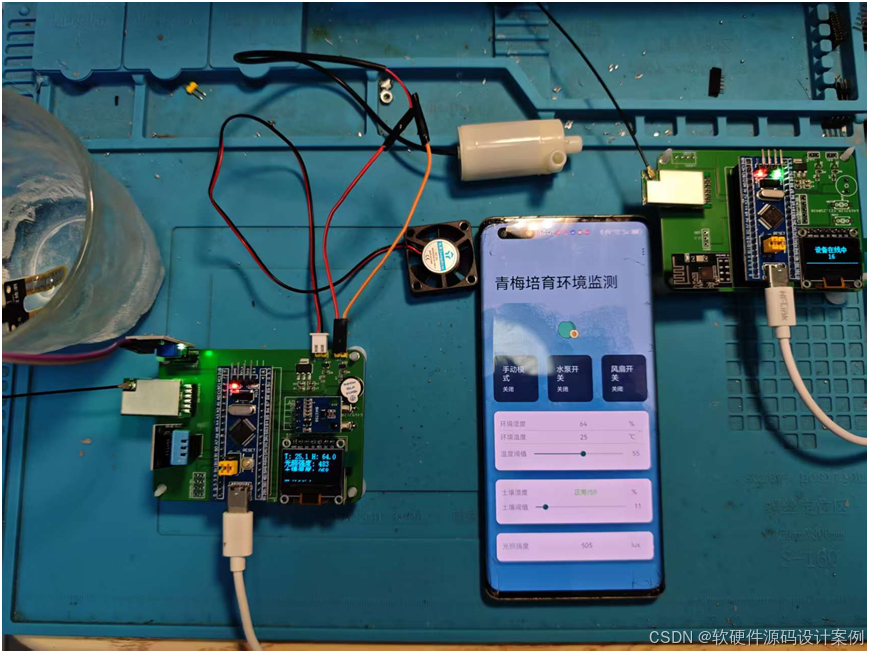 长按按键1/2切换设备手动和自动模式短按按键1可以开启和关闭水泵短按按键2可以开启和关闭风扇。