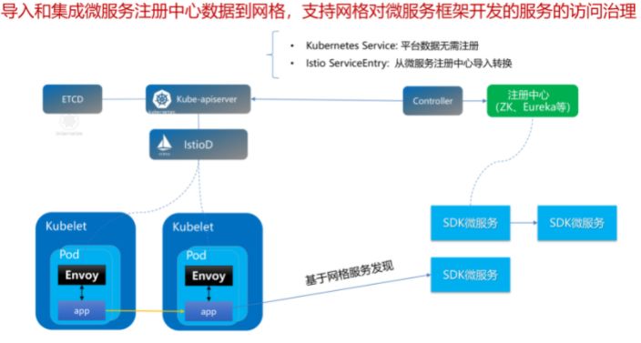 在使用k8s做服务发现,再使用网格的能力,服务完全无需修改适配