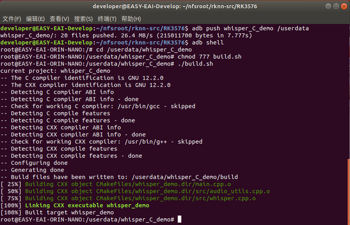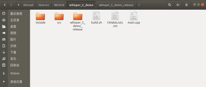 编译成功后会得到whisper_demo可执行程序,切换到whisper_C_demo_release/目录: