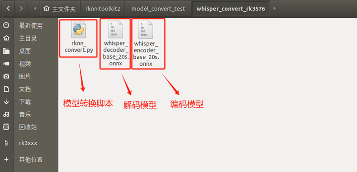 把whisper_convert_rk3576.tar.bz2解压到虚拟机,如下图所示: